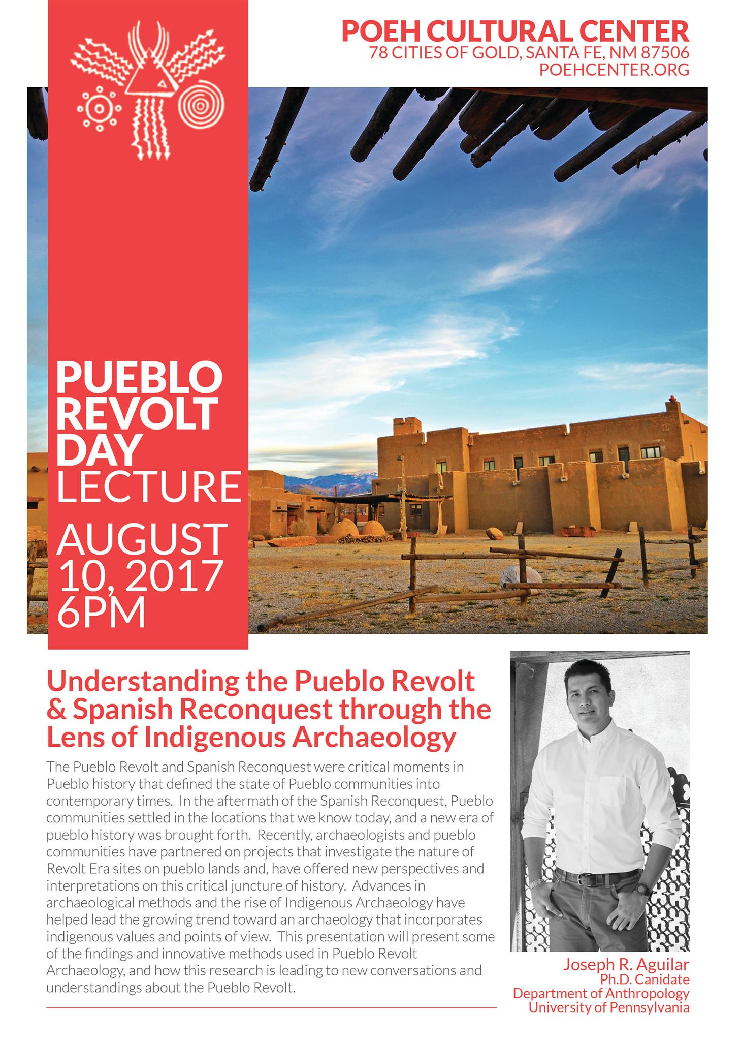 The Poeh hosts, "Understanding the Pueblo Revolt & Spanish Reconquest through the Lens of Indigenous Archaeology," a talk by Joseph R. Aguilar (San Ildefonso Pueblo - Ph.D. Canidate, Department of Anthropology, University of Pennsylvania). The Pueblo Revolt and Spanish Reconquest were critical moments in Pueblo history that defined the state of Pueblo communities into contemporary […]